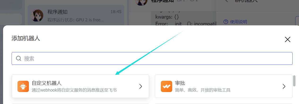 - 用电脑版飞书在群聊里添加自定义机器人