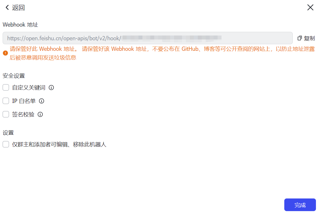 然后复制这个webhook地址。