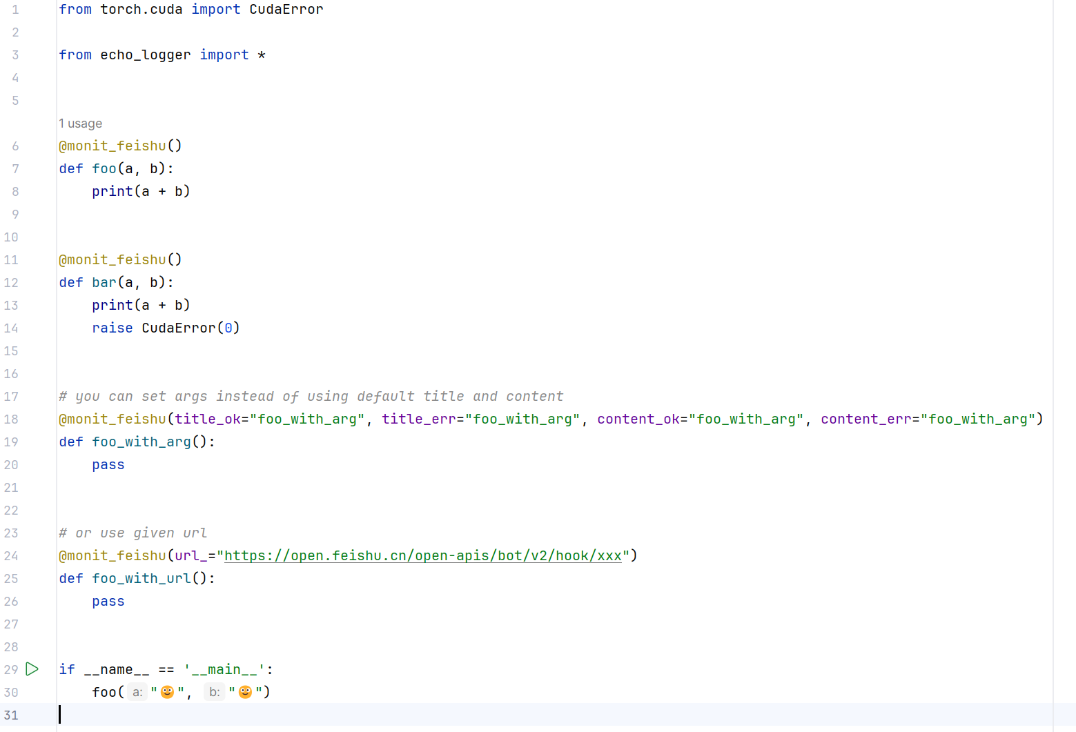 使用封装好的 @monit_feishu() 装饰器